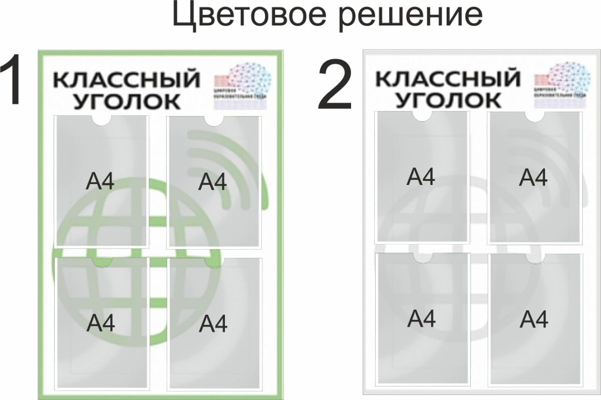Стенд изготавливается стандартно из: основа- ПВХ 2мм (опц. ПВХ 3мм, ПВХ-4мм, ПВХ 5мм, ПВХ-5мм + по периметру обкладывается профилем НЕЛЬСОН (для придания более презентабильного вида). Опционально ламинируется (для антивандальной и УФ защиты), возможна UV-печать. Цветовое решение -мятный, серый.